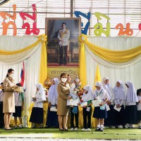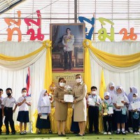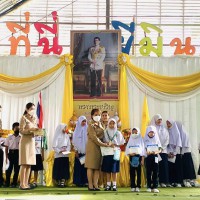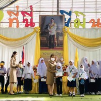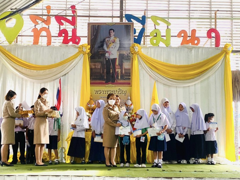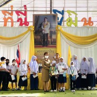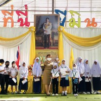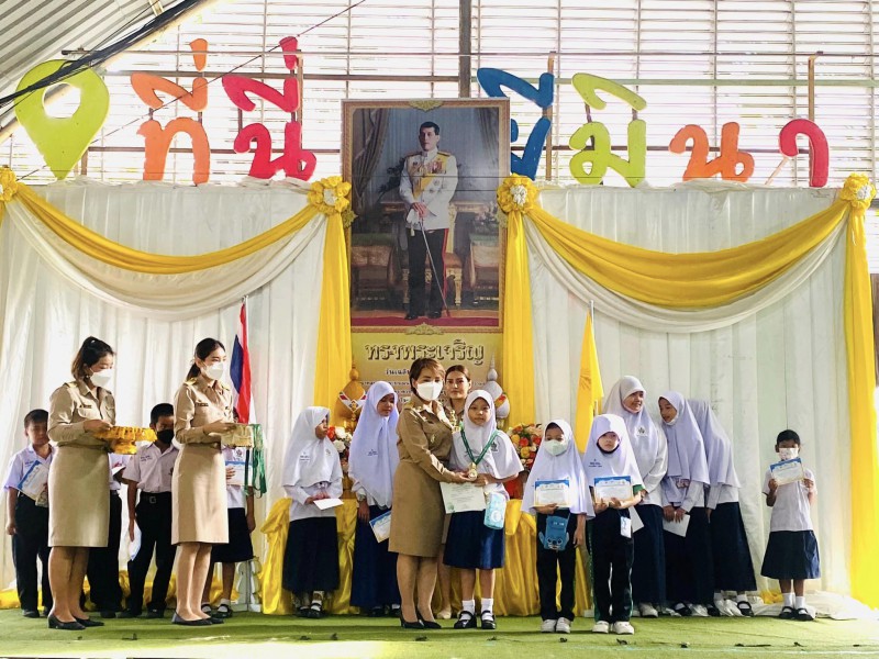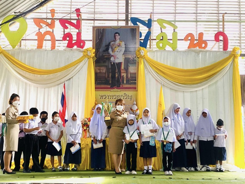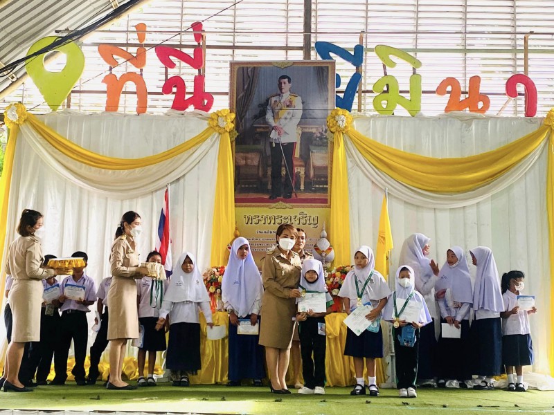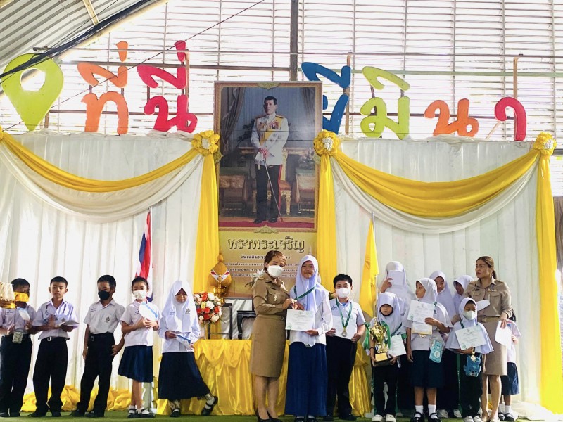 มอบเกียรติบัตร เหรียญรางวัล และถ้วยรางวัลเพื่อแสดงความยินดีให้แก่นักกีฬาหมากล้อมของโรงเรียนสุเหร่าหะยีมินา ในการแข่งขันกีฬานักเรียนของโรงเรียนในสังกัดกรุงเทพมหานคร