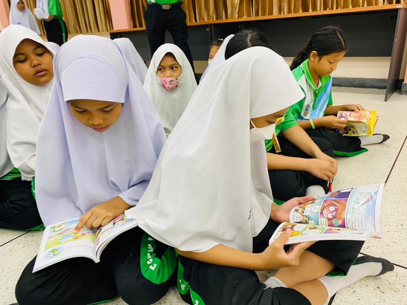 ขอขอบคุณศูนย์หนังสือจุฬาลงกรณ์มหาวิทยาลัย สาขาหัวหมาก ที่ได้มอบหนังสือจากงาน ลดยกคลัง เอาลังมาใส่ ให้แก่ห้องสมุดโรงเรียนสุเหร่าหะยีมินา