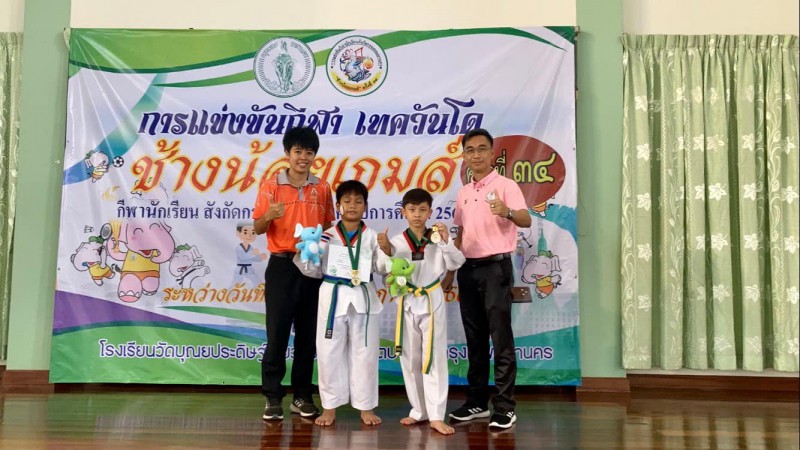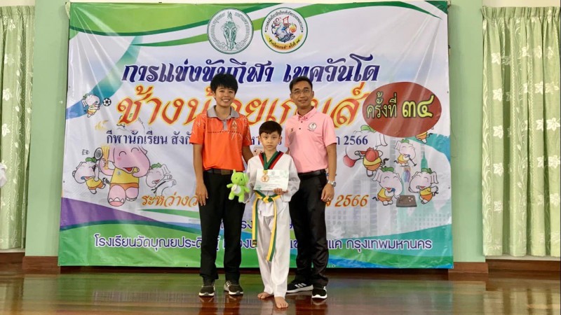 2. เด็กชายธีรณัฐ ทรงศิริ ได้รับรางวัลเหรียญทองแดง รายการ การแข่งขันกีฬาเทควันโด ประเภทรุ่น ยุวชนอายุไม่เกิน 8 ปี ชาย รุ่นน้ำหนักไม่เกิน 28 กก.ขึ้นไป