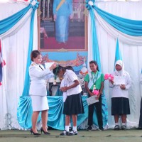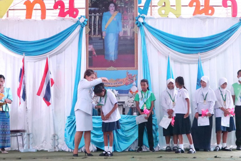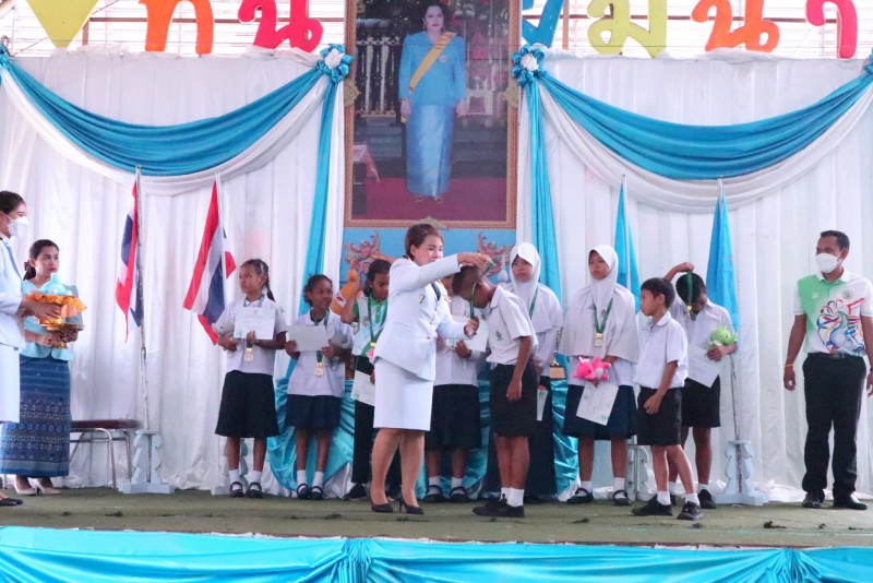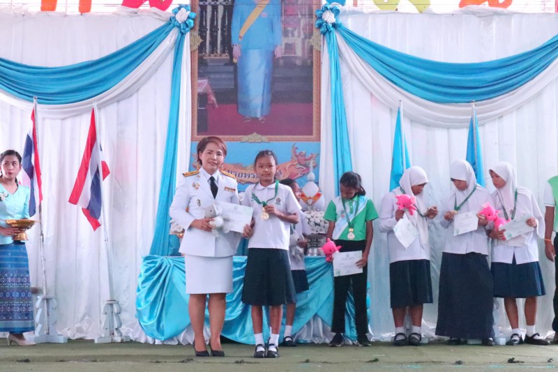 มอบเหรียญรางวัลและเกียรติบัตรให้แก่นักเรียนที่ได้รับรางวัลจากการเข้าร่วมแข่งขันกีฬาช่างน้อยเกมส์ ครั้งที่ 34