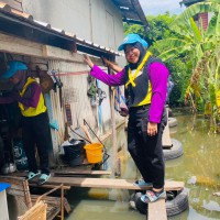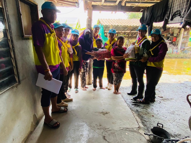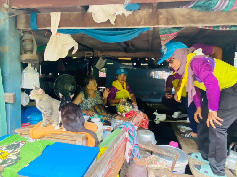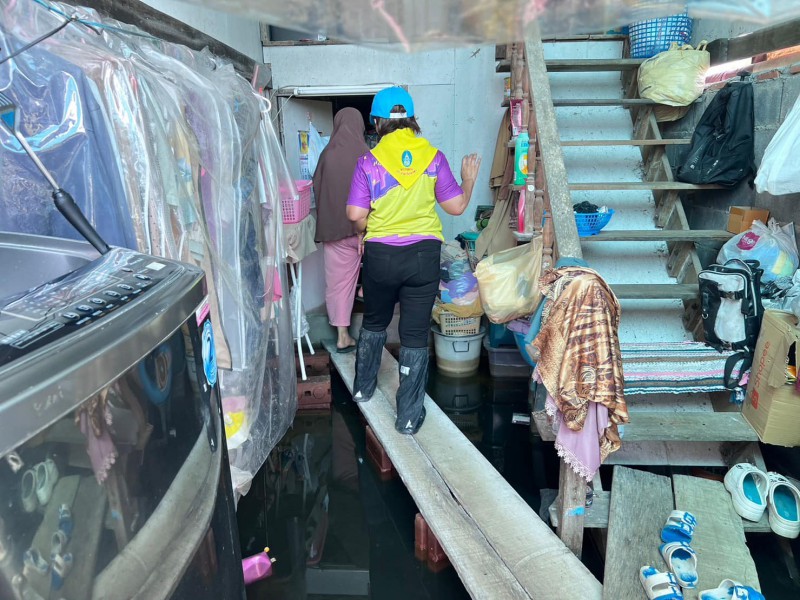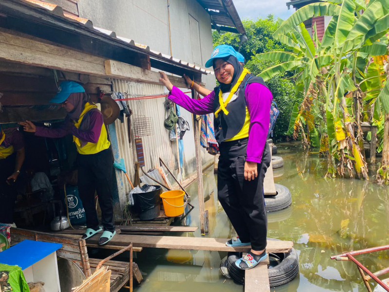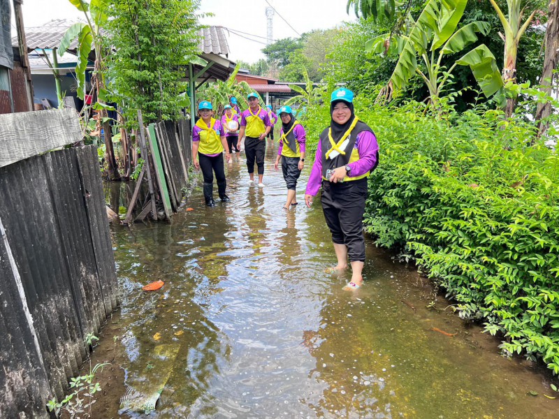 เยี่ยมและให้กำลังใจกับนักเรียนและผู้ปกครองที่ได้รับผลกระทบจากฝนตกหนักทำให้เกิดน้ำท่วมขังบริเวณบ้านเรือน