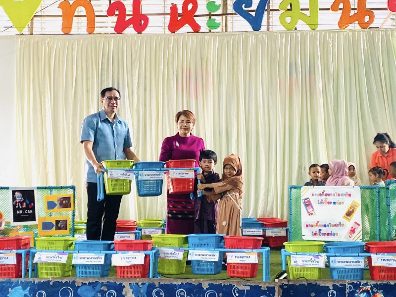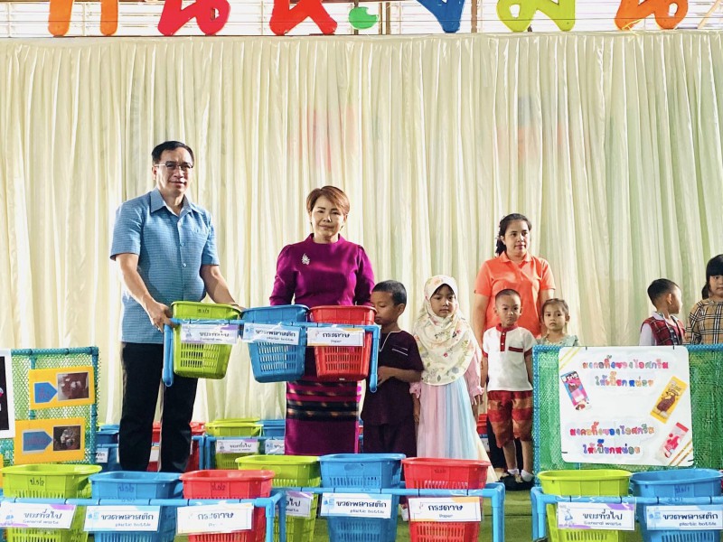 ฝึกให้นักเรียนมีการแยกขยะก่อนทิ้งในทุกห้องเรียน