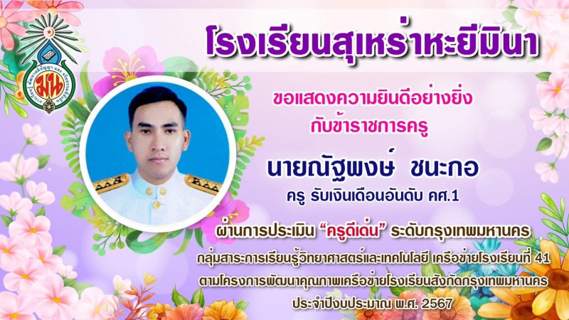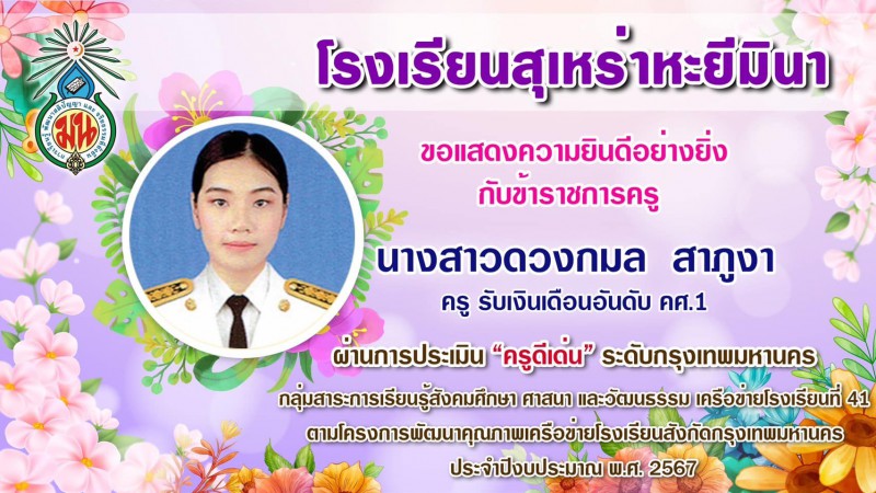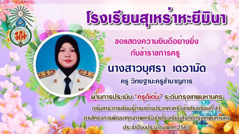 ขอแสดงความยินดีกับคุณครูที่ผ่านการประเมิน “ครูดีเด่น” ระดับกรุงเทพมหานคร