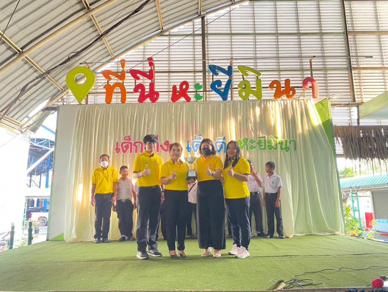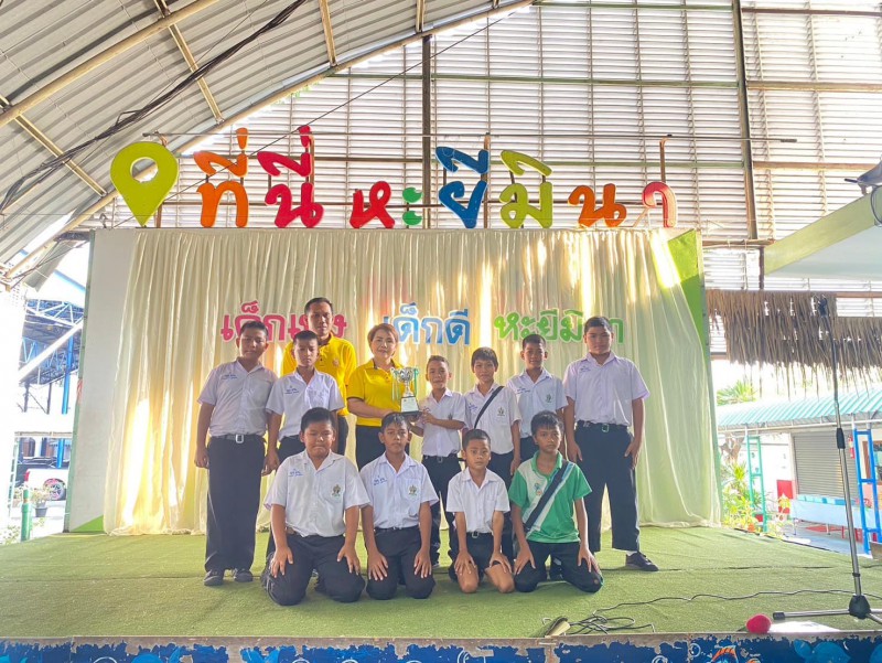 มอบถ้วยรางวัลและแสดงความยินดีให้กับ ครู บุคลากร และนักเรียน ซึ่งได้รับรางวัลชนะเลิศ การแข่งขันกีฬาชุมชนกรุงเทพมหานคร รอบคัดเลือกตัวแทนเขตหนองจอก
