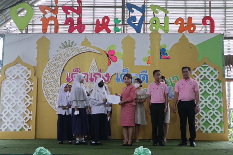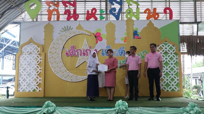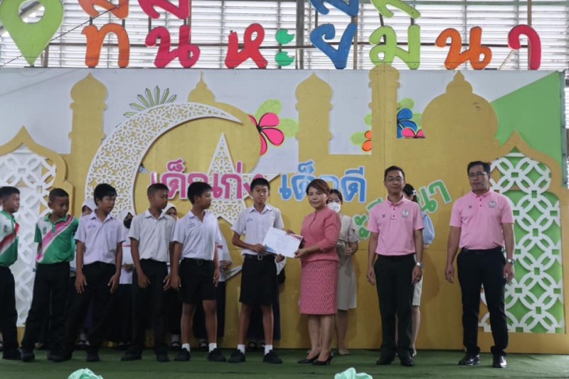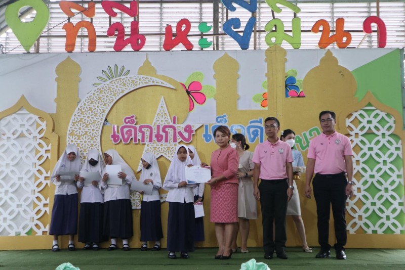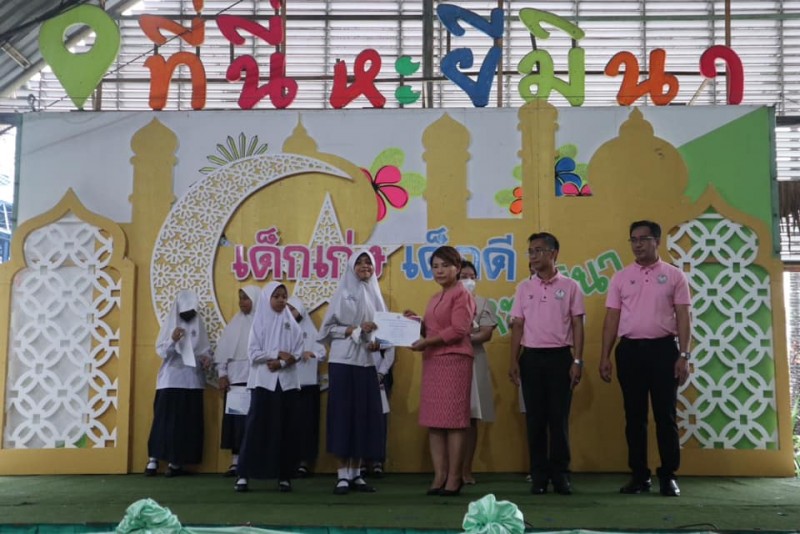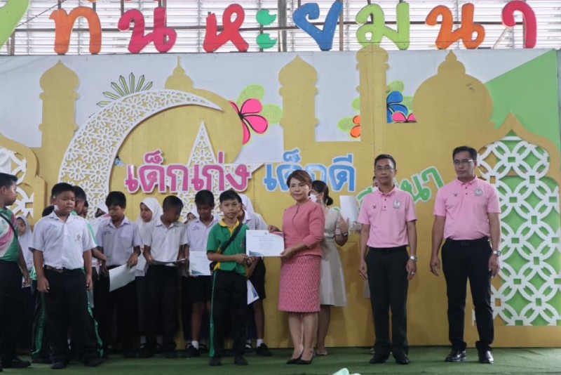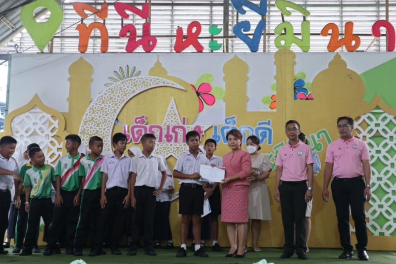โรงเรียนสุเหร่าหะยีมินา โดย ผอ.วรรธนพร อรุณประเสริฐศรี มอบเกียรติบัตรและถ้วยรางวัลให้กับนักเรียนที่ได้รับรางวัลจากการเข้าร่วมแข่งขันทักษะทางวิชาการและทางด้านกีฬา
