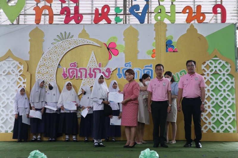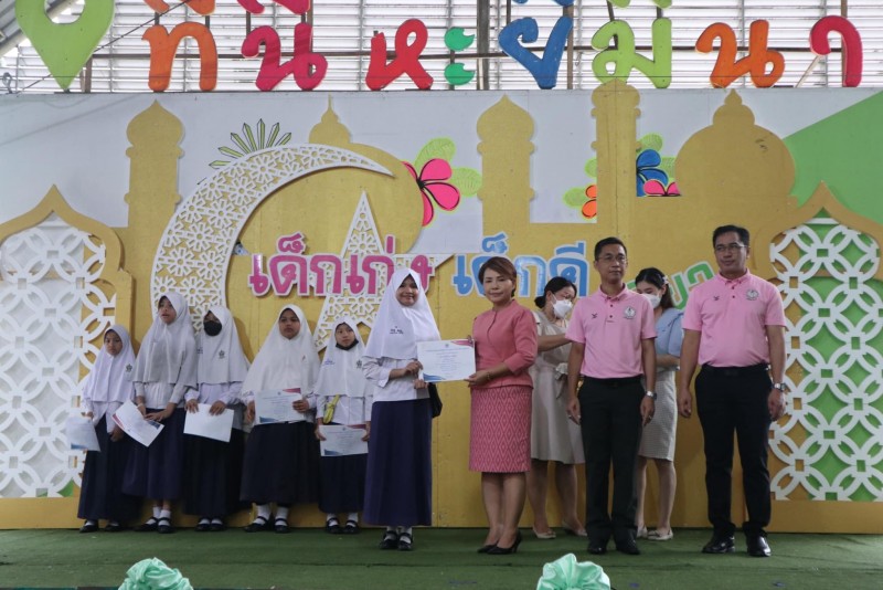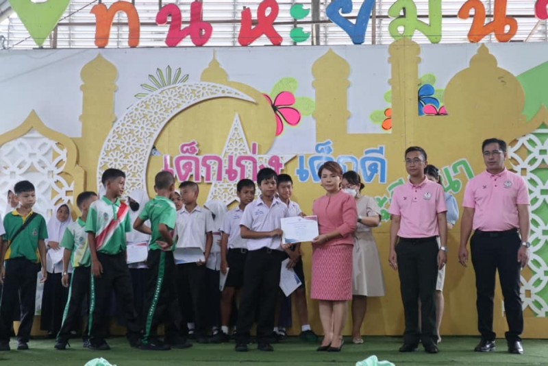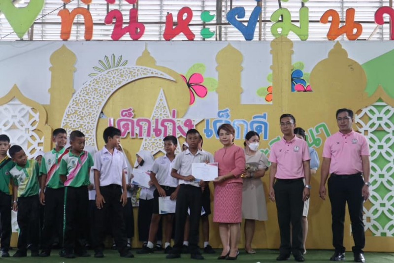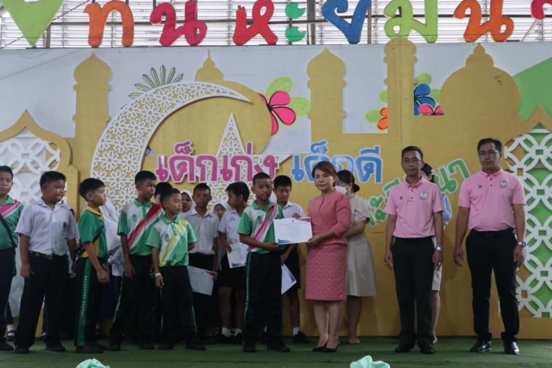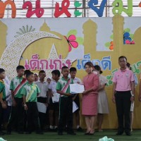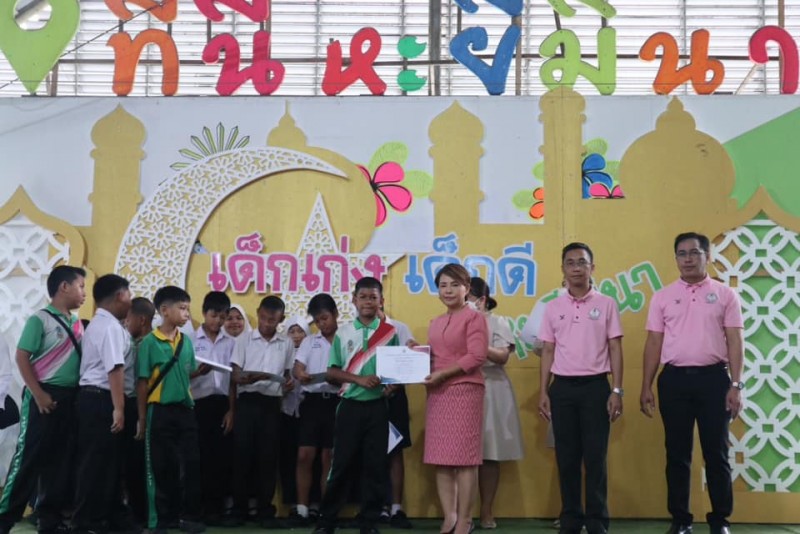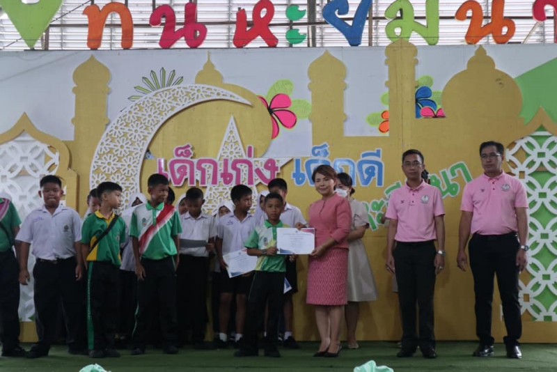 มอบเกียรติบัตรและถ้วยรางวัลให้กับนักเรียนที่ได้รับรางวัลจากการเข้าร่วมแข่งขันทักษะทางวิชาการและทางด้านกีฬา