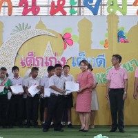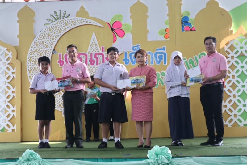 มอบเกียรติบัตรและถ้วยรางวัลให้กับนักเรียนที่ได้รับรางวัลจากการเข้าร่วมแข่งขันทักษะทางวิชาการและทางด้านกีฬา