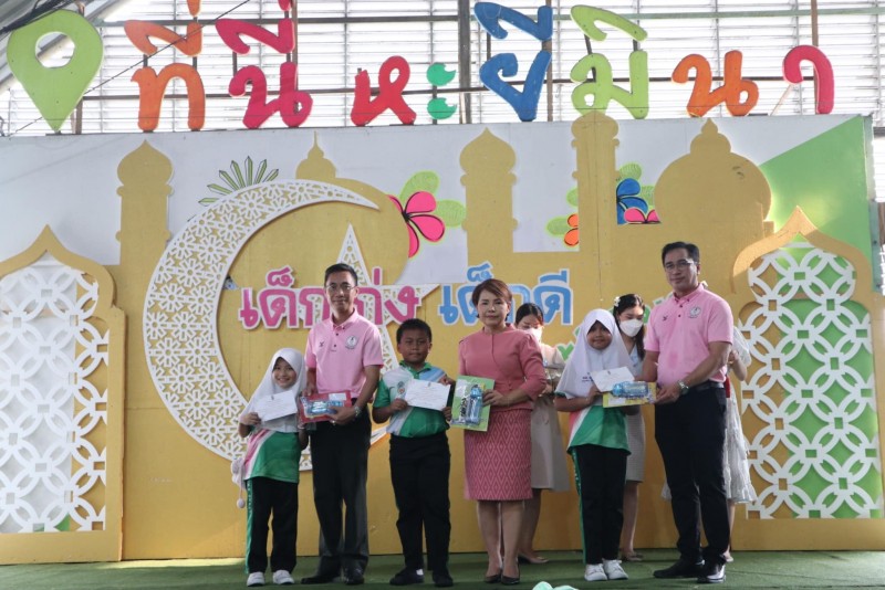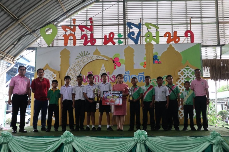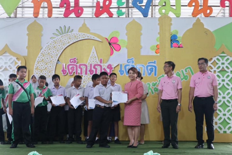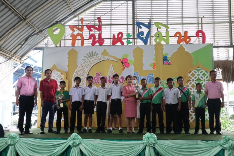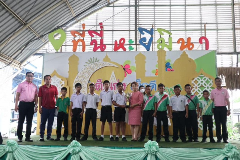 โรงเรียนสุเหร่าหะยีมินา โดย ผอ.วรรธนพร อรุณประเสริฐศรี มอบเกียรติบัตรและถ้วยรางวัลให้กับนักเรียนที่ได้รับรางวัลจากการเข้าร่วมแข่งขันทักษะทางวิชาการและทางด้านกีฬา
