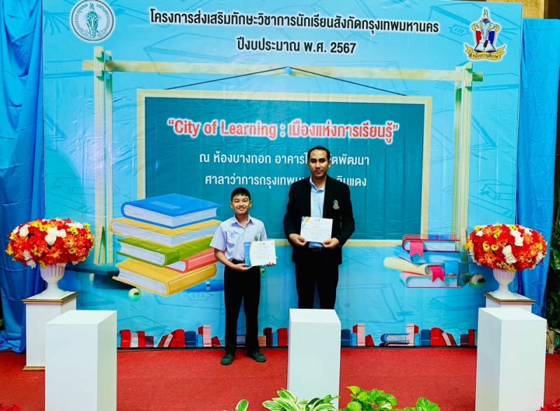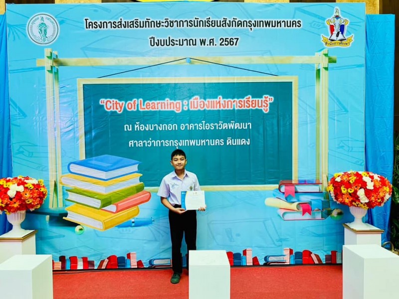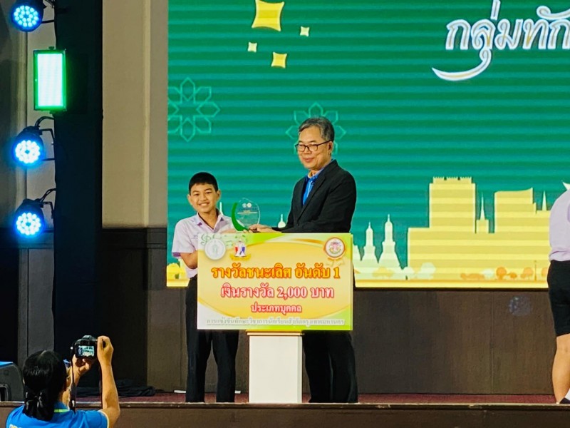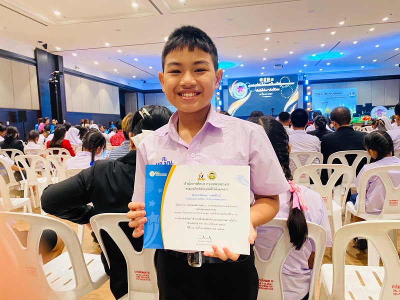 ขอแสดงความยินดีกับ เด็กชายพัชรพล วงษ์ศรีรัตน์ นักเรียนชั้นประถมศึกษาปีที่ 5 ทึ่ได้รับรางวัล รองชนะเลิศอันดับ 1 การแข่งขันทักษะทางคอมพิวเตอร์ ประเภท โปรแกรม Powerpoint 2021 ระดับกรุงเทพมหานคร