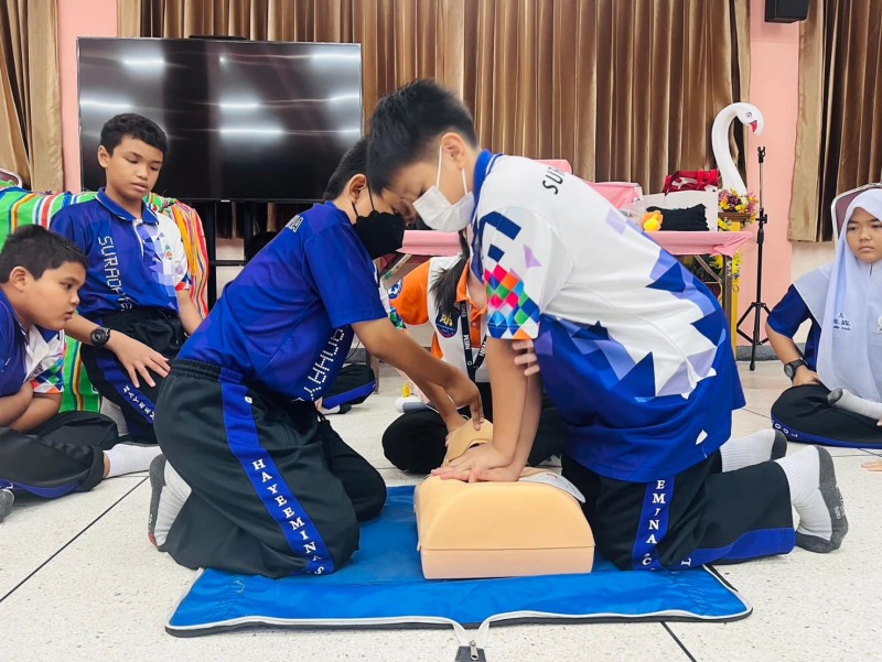 กิจกรรมฝึกทักษะการช่วยเหลือชีวิตเบื้องต้นสำหรับผู้ประสบภัยและการเอาชีวิตรอด การฝึก CPR