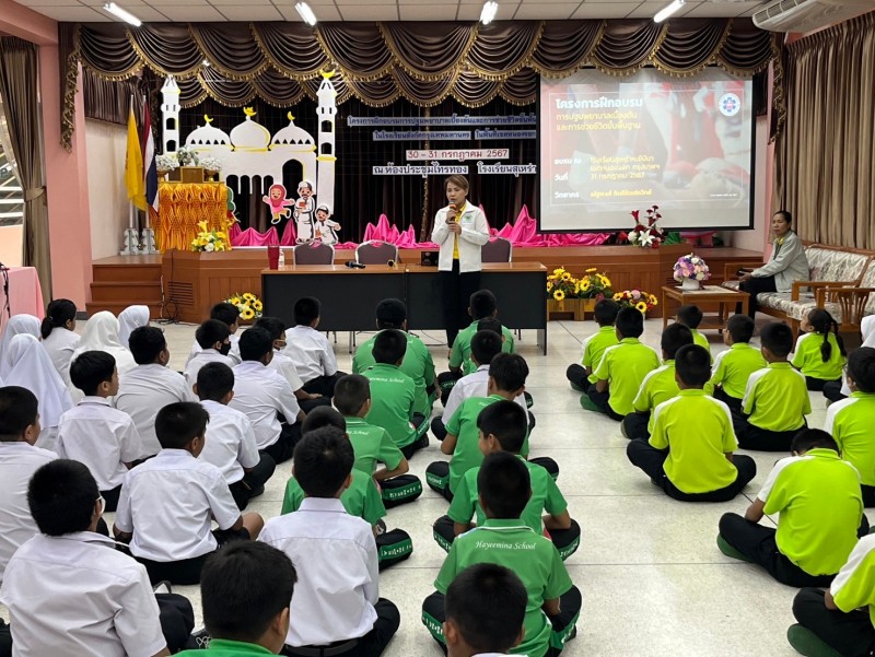 นางวรรธนพร อรุณประเสริฐศรี ผู้อำนวยการสถานศึกษาโรงเรียนสุเหร่าหะยีมินา กล่าวต้อนรับ และให้คำแนะนำนักเรียน ในการอบรมตามโครงการปฐมพยาบาลเบื้องต้นและการช่วยชีวิตขั้นพื้นฐาน(CPR) โดยมีนักเรียนในโรงเรียนใกล้เคียง คือ โรงเรียนอิสลามลำไทร โรงเรียนสุเหร่าอีรั้ว โรงเรียนนิลราษฎร์อุปถัมภ์ โรงเรียนหลวงแพ่งบำรุงรัฐกิจ โรงเรียนสามแยกท่าไข่ นักเรียนระดับชั้น ป.5 เข้าอบรม วันที่ 30 - 31กรกฎาคม 2567 |