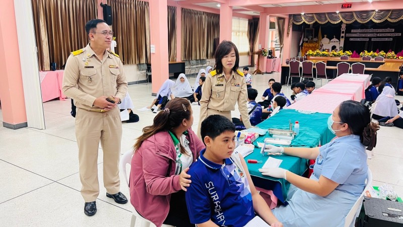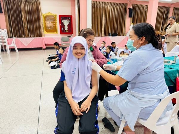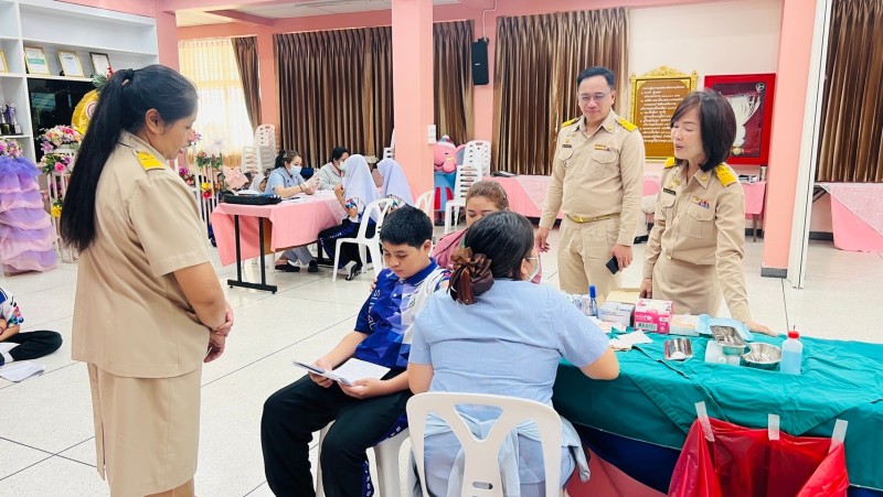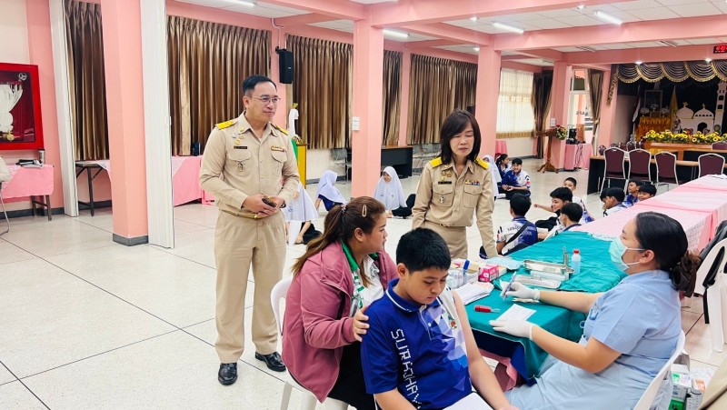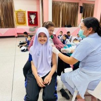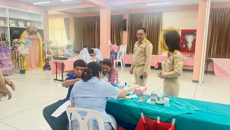 นักเรียนชั้น ป.6 และ ป.1 เข้ารับการฉีดวัคซีน โดยเจ้าหน้าที่ศูนย์บริการสาธารณสุขที่ 44