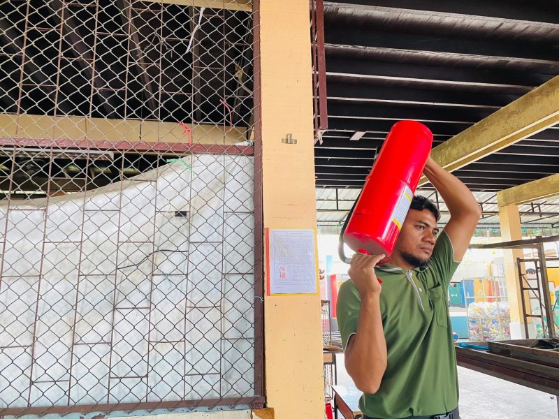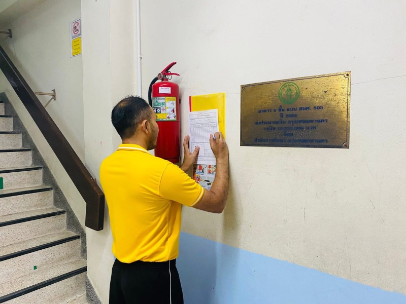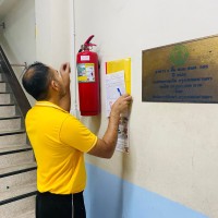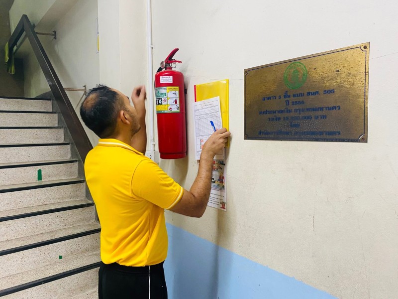 ได้มีการตรวจสอบความพร้อมของถังดับเพลิงให้พร้อมใช้งาน ในกิจกรรมความปลอดภัยในโรงเรียน