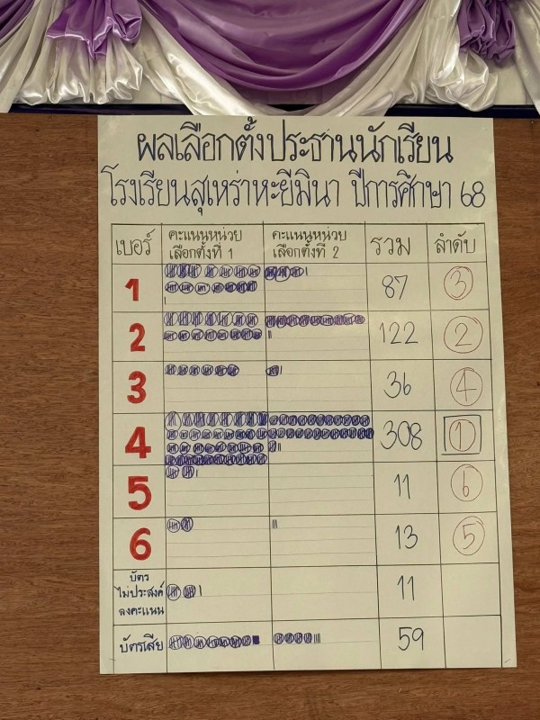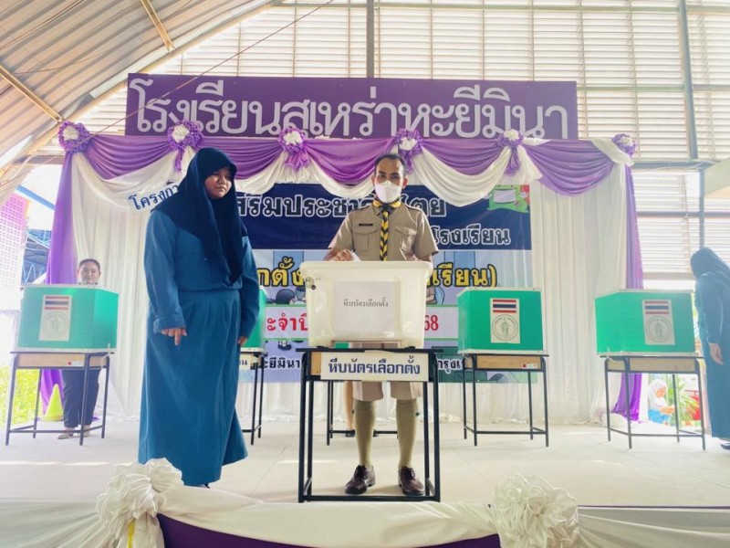นางพิมวรา บุญศรี ผู้อำนวยการโรงเรียนสุเหร่าหะยีมินา มอบหมายรองธานี สมานตระกูล ดูแลความเรียบร้อยในการเลือกตั้งสภานักเรียน โดยมีครูกลุ่มสาระการเรียนรู้สังคมศึกษาเป็นแกนนำ การเลือกตั้งมี 2 หน่วยเลือกตั้งโดยผู้มีสิทธิ์ทั้งครูและนักเรียนชั้นประถมศึกษาร่วมลงคะแนน ผลการลงคะแนนประธานนักเรียนได้แก่หมายเลข 4 ด.ข.วีรกานต์ รักษาราชวิตร |