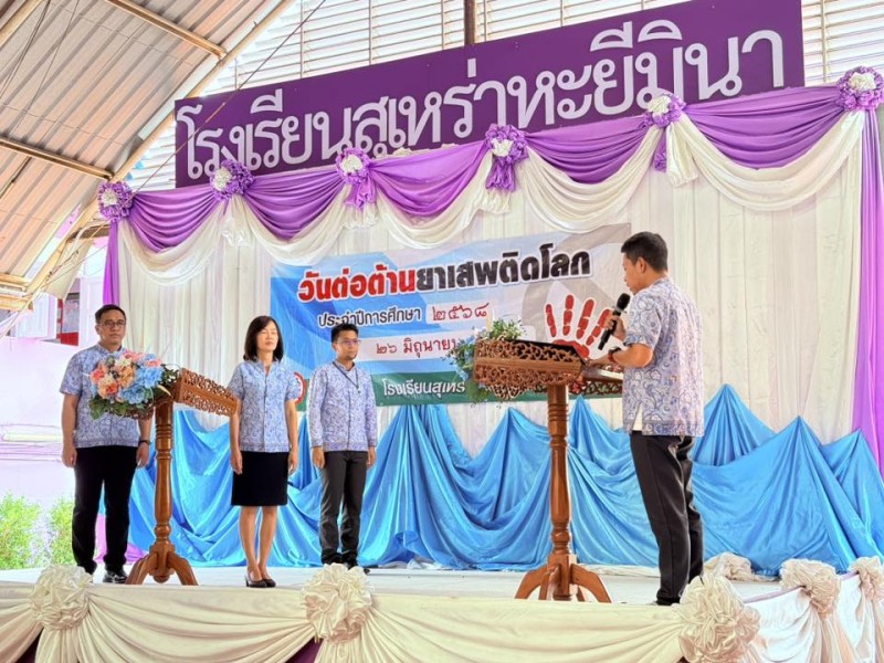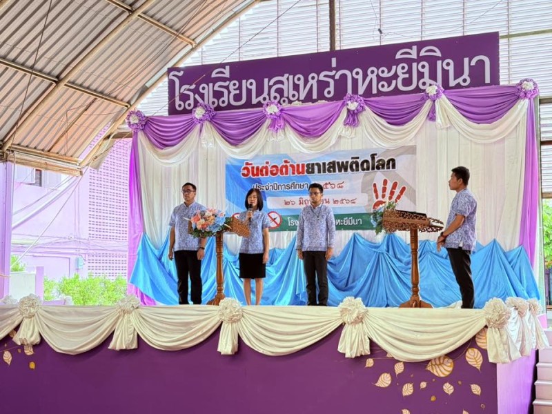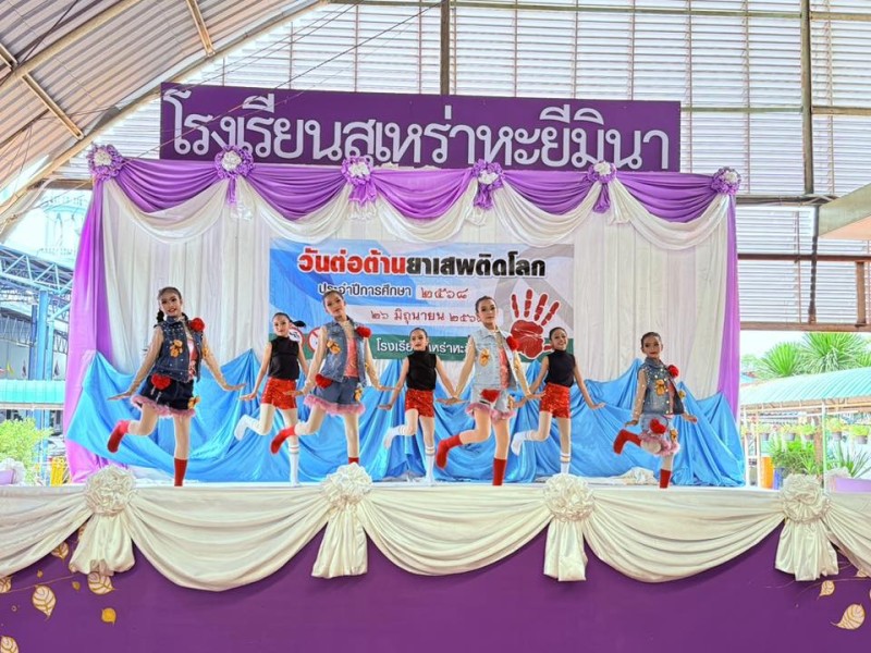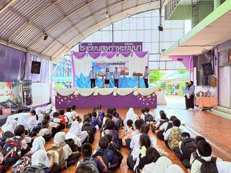 #โรงเรียนสุเหร่าหะยีมินา โดย ผอ.พิมวรา บุญศรี จัดกิจกรรมวันต่อต้านยาเสพติดโลก เพื่อให้นักเรียนและคณะครูได้ร่วมแสดงความจงรักภักดี ถวายแด่รัชการที่ 10 และร่วมสารต่อพระราชปณิธานการแก้ปัญหายาเสพติด รวมทั้งนักเรียนรู้และตระหนักถึงพิษภัยของยาเสพติดให้โทษ และสามารถหาวิธีการปฏิเสธหลีกเลี่ยงยาเสพติดให้โทษทุกชนิด ณ โรงเรียนสุเหร่าหะยีมินา วันที่ 27 มิถุนายน 2568