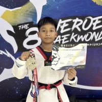1. ด.ช. ธราเทพ เจ๊ะเต๊ะ ได้รับรางวัล รองชนะเลิศอันดับ 1 เหรียญเงิน ประเภทต่อสู้ รุ่นอายุ 9-10 ปีชาย น้ำหนัก 36-40 k.