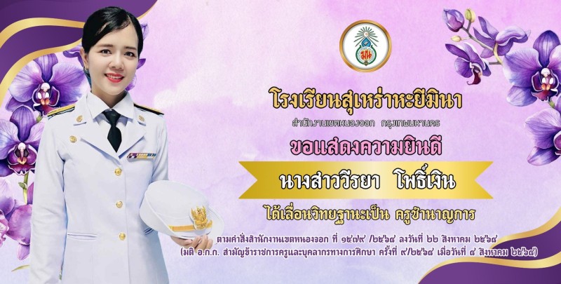 ขอแสดงความยินดีกับคุณครูวีรยา โพธิ์เงิน