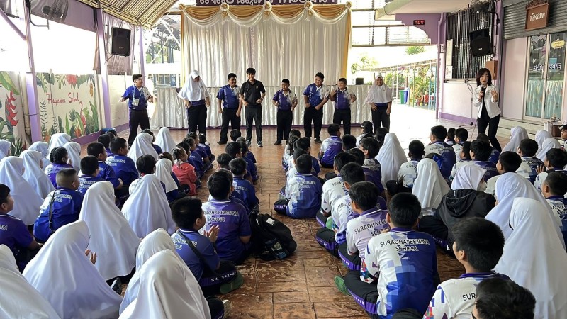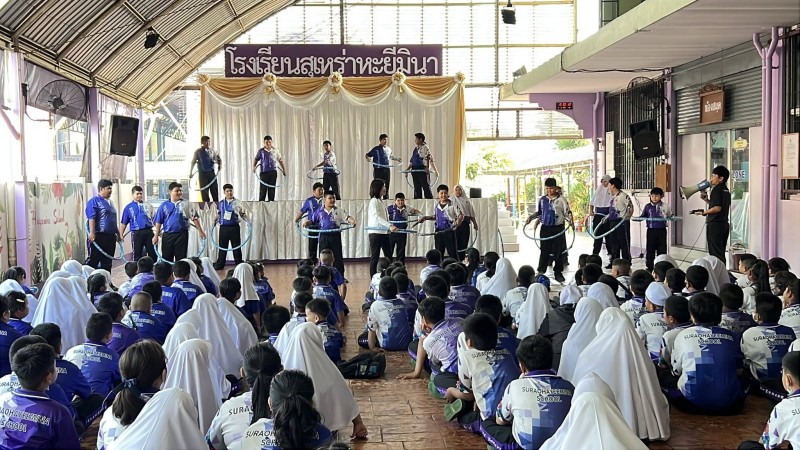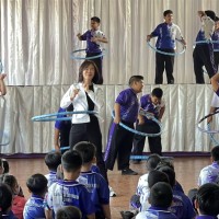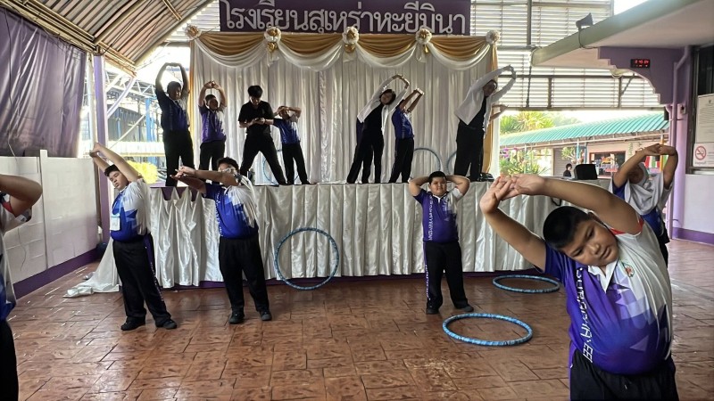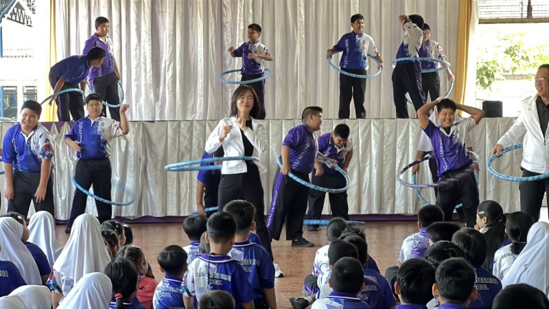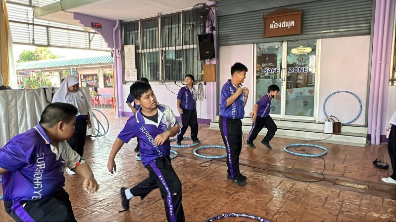 นางพิมวรา บุญศรี ผู้อำนวยการโรงเรียน เปิดกิจกรรม "เด็กหะยีไร้พุง" โดยให้ความรู้การดูแลตนเองที่ถูกต้อง การออกกำลังกายที่เหมาะสมกับนักเรียนที่เป็นกลุ่มเป้าหมาย โดยมีครูผู้รับผิดชอบกิจกรรมติดตามดูแล โอกาสนี้ได้นำเล่นฮูลาฮูป และนำแอโรบิคในวันเปิดกิจกรรม |