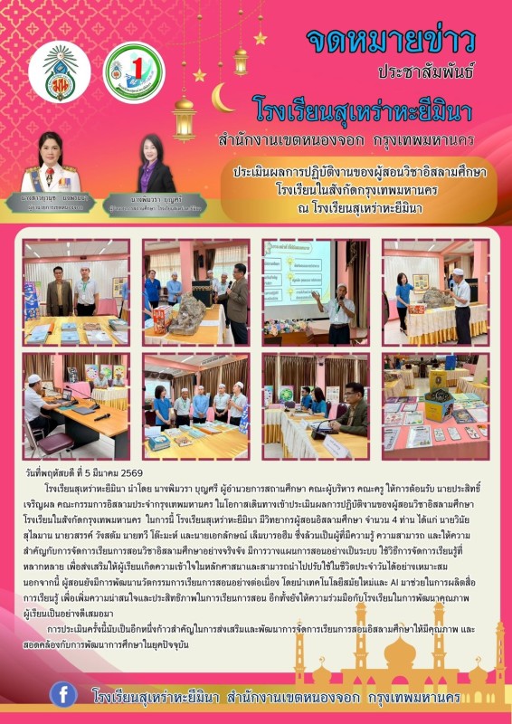 ให้การต้อนรับ นายประสิทธิ์ เจริญผล คณะกรรมการอิสลามประจำกรุงเทพมหานคร ในโอกาส เข้ามาประเมินผลการปฏิบัติงานของผู้สอนวิขาอิสลามศึกษา โรงเรียนในสังกัดกรุงเทพมหานคร